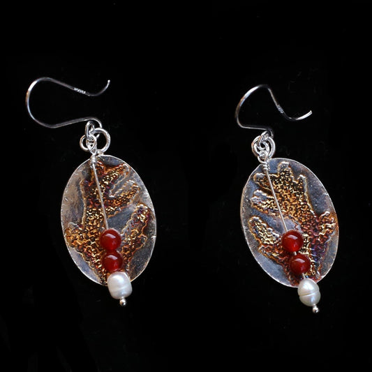 Available on RequestCoral Pattern Textured Earrings with Pearl and Carnelian Beads