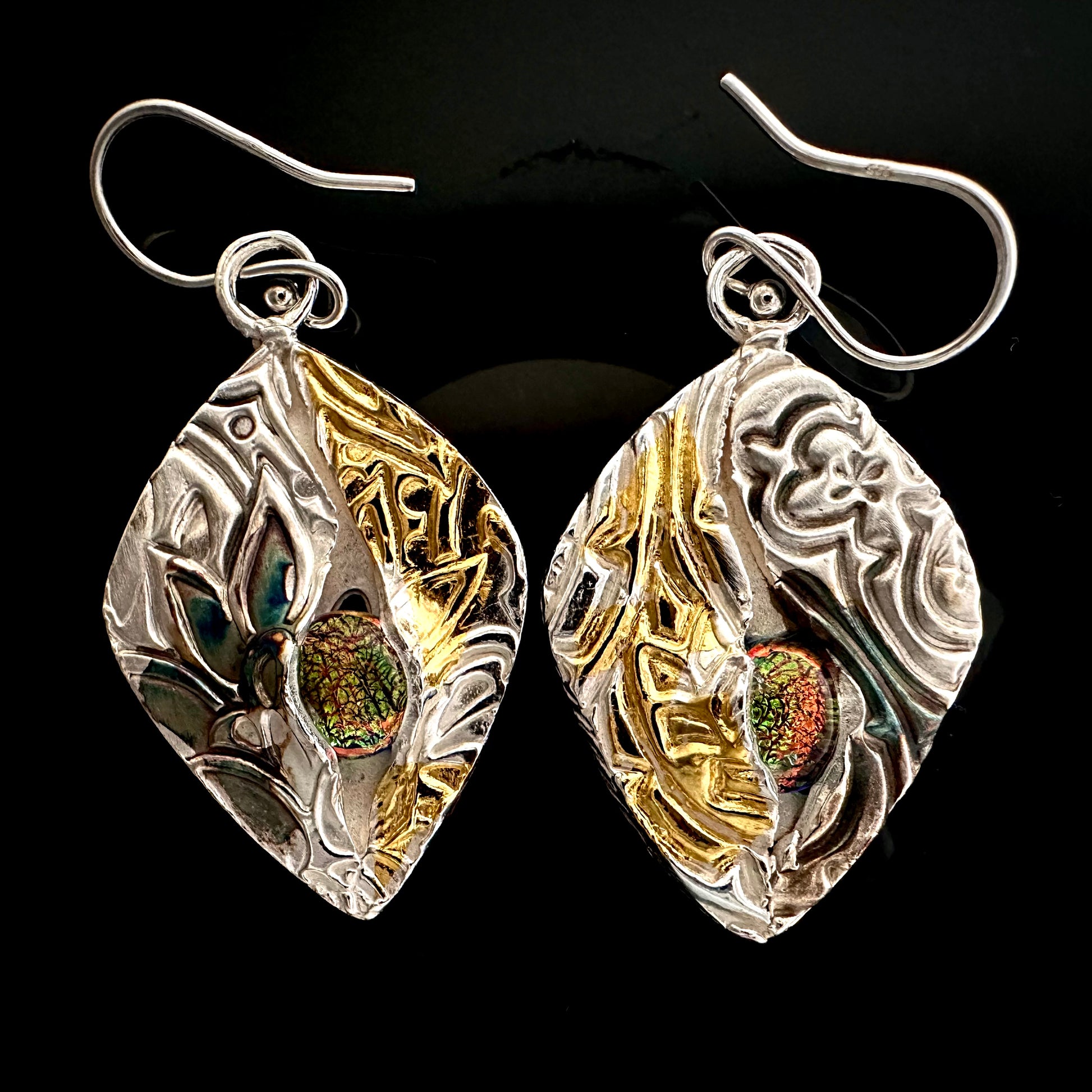Earrings Multicolored Dichroic Glass In Silver and Gold