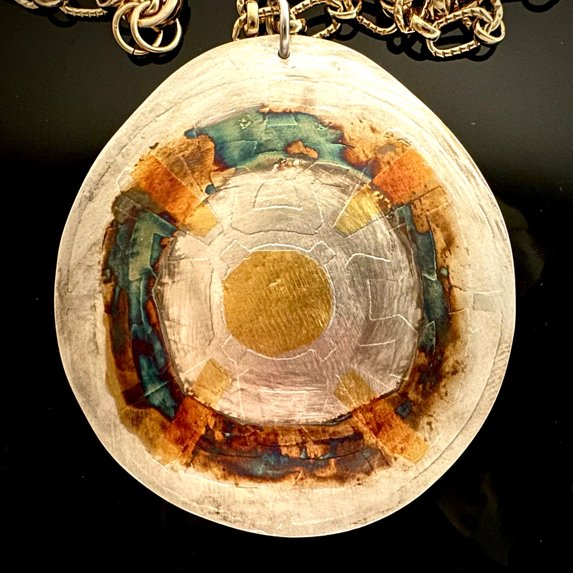 I depletion gilded this piece and burnished 24K Gold Foil on parts of the heated silver.